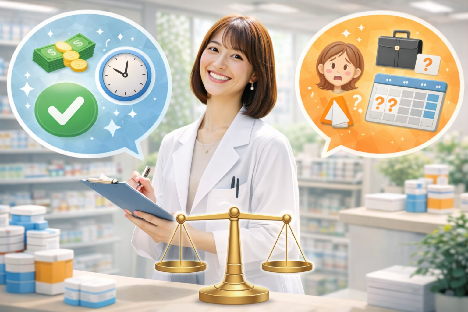 「今の職場、残業が多くて子供のお迎えがいつもギリギリ……」「もっと家族との時間を大切にしたいけれど、薬剤師としてのキャリアも手放したくない」 毎日、仕事に家事に育児にと奔走する中で、ふとそんな風に感じることはありませんか […]